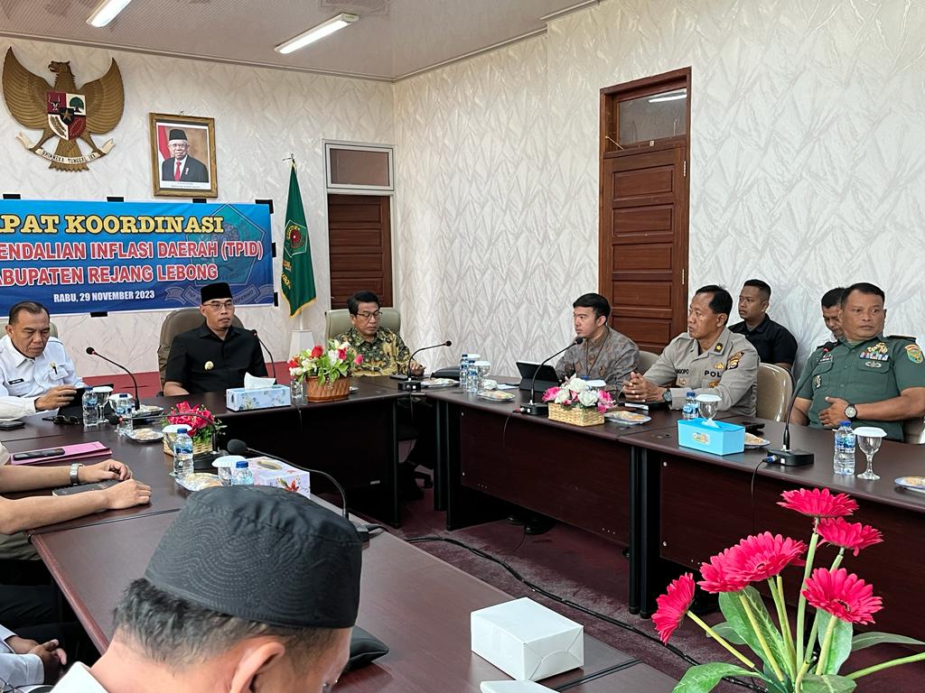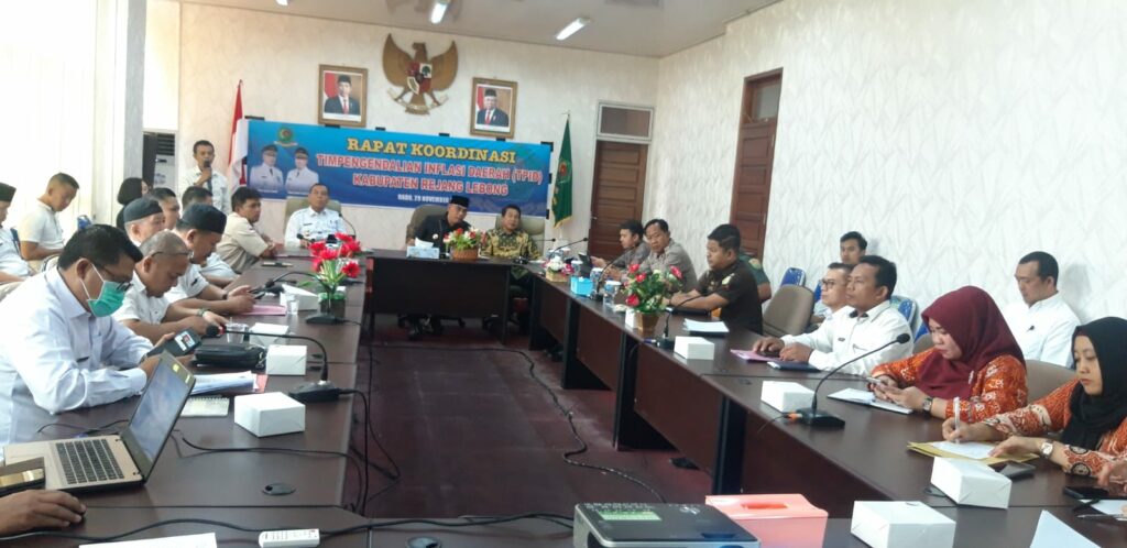 PSDANews – Wakil Bupati Rejang Lebong Hendra Wahyudiansyah, S.H., membuka High Level Meeting (HLM) Tim Pengendali Inflasi Daerah (TPID) Kabupaten Rejang Lebong, Rabu (29/11/2023). Pertemuan TPID yang bertempat di ruang bupati ini, dihadiri oleh unsur Kepolisian, Kejaksaan, Kodim, Instansi Vertikal, OPD terkait serta tiga nara sumber yaitu Assisten II bidang Perekonomian dan pembangunan Kabupaten Rejang lebong ,Karo Perekonomian dan SDA Provinsi Bengkulu serta Perwakilan Bank Indonesia Wilayah Bengkulu. Dalam sambutannya Wabup mengatakan bahwa Rakor ini diharapkan bisa memberikan solusi terutama terhadap IPH Rejang lebong yang tinggi. ” Seperti kita ketahui, IPH RL November ini diangka 6,04 persen, dengan sumbangan terbanyak dari komoditi cabe dan bawang, diharapkan pertemuan ini bisa memberikan solusi efektif agar fluktuasi harga bisa dikendalikan”. Ungkap wabup dalam sambutannya.